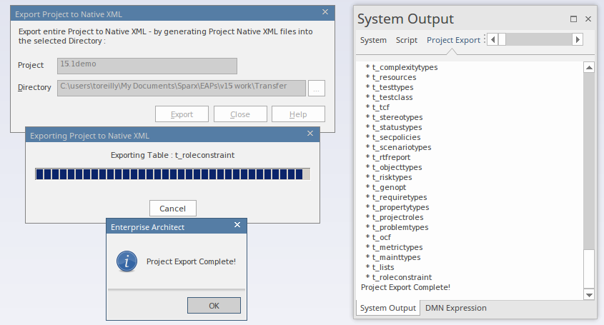 - Opening the source project in Enterprise Architect and exporting it to Native XML using the 'Export Project to Native XML' dialog.