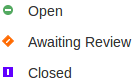 Whilst you are adding comments to a review, at any point you can return to a posted topic and add or change its status and priority. To the right of the review topic text are two icons. The first is the 'Status' icon, and the second is the 'Priority' icon. The appearance of the icons depends on the current setting for status and priority. To set a status or priority, simply click on the appropriate icon and select from the listed options. These are: