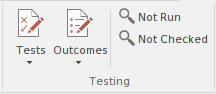 The 'Testing' panel is used for creating and managing all aspects of testing. The Testing window conveniently collects all the tests for an element, and allows new tests to be created and existing ones to be managed. The tests can be fully described and Inputs, Acceptance Criteria, Results, Status and more can be defined for each test. There are several predefined searches that can be run to find recent test results, such as the recent tests that have passed. A configurable Test Report can also be generated, creating a single document that describes all tests or any combination of tests.