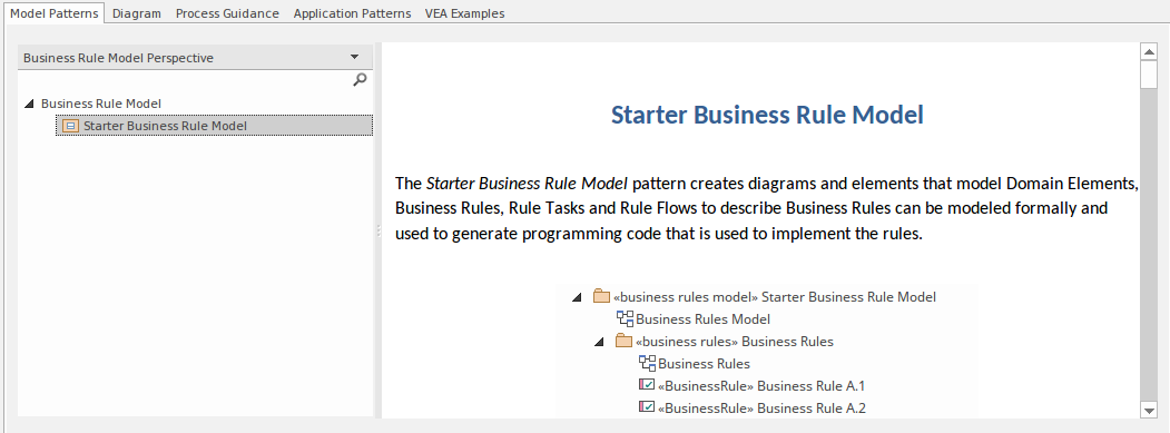Selecting a built-in Perspective automatically brings up the Model Wizard, which provides a rich set of new model patterns and guidance notes, filtered to narrow down the available patterns, technologies, diagram types and other modeling constructs to the precise set required, with similar actions on the Diagram Toolbox pages and dialogs. This helps you to quickly build accurate, focused models with minimal 'noise' and maximum fidelity.