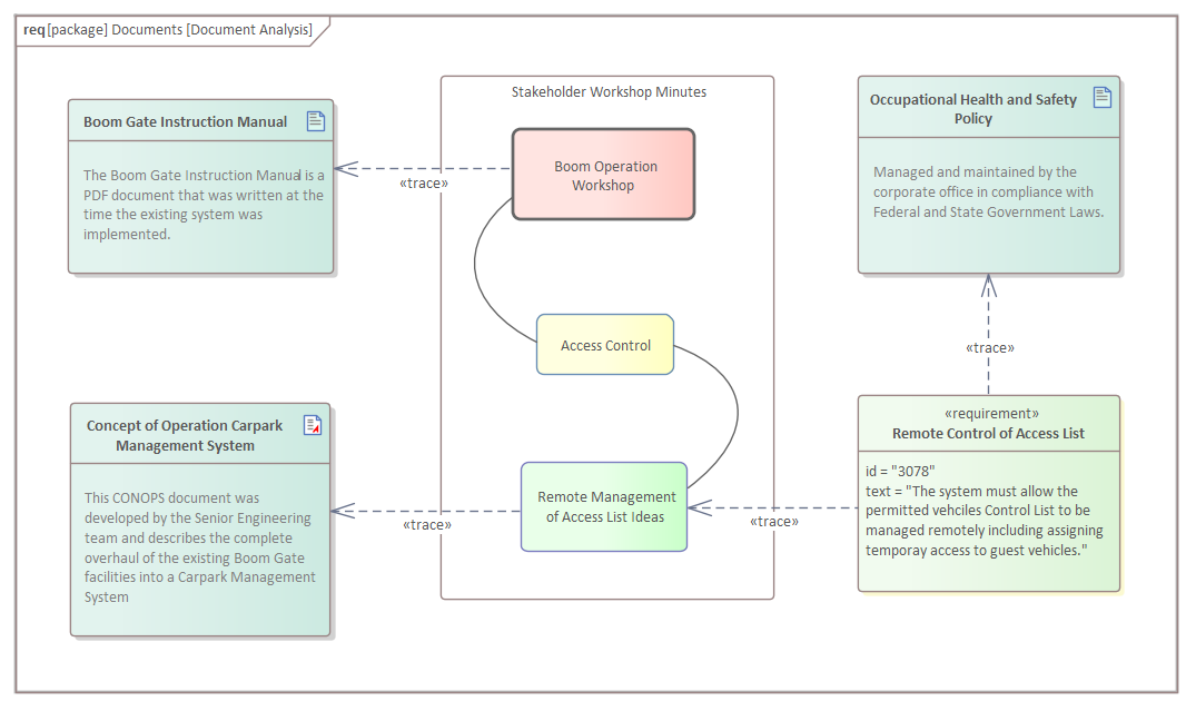While all of these documents can be developed in Enterprise Architect using the Document Artifact facility they are typically developed in other tools and live outside the repository. They can be dragged onto a diagram and either imported into the repository or saved as a reference or surrogate for the external document.