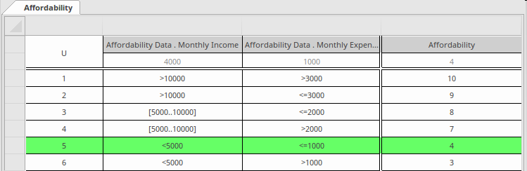 In this diagram the affordability data has been input by the simulation engine, and this will be used to calculate whether the applicant can afford to service the loan. We will see by the result in the next illustration what decision will be made.
