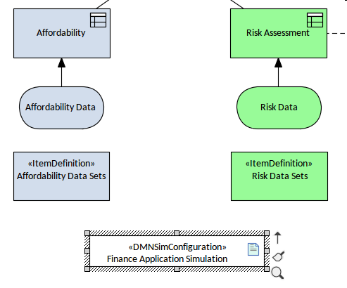 Setting up a simulation is straightforward; Enterprise Architect provides an Artifact that can be simply added to any Decision Requirements diagram to begin the process of configuring the Decision Model. The DMN Simulation Configuration element, available from the DMN Toolbox page, has the abbreviated name DMNSimConfiguration.
