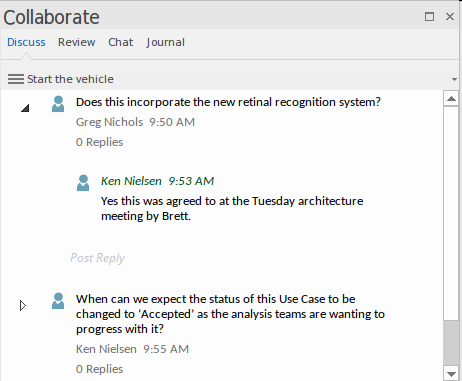 The Specification Manager can be used in conjunction with a platform of other tools such as diagrams, the Traceability window and the Discussions facility.