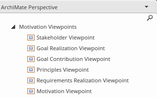 Figure: Showing the viewpoints in the Motivation group that relate elements such as Stakeholders and Drivers.