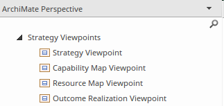 Figure: Showing the viewpoints in the Strategy group showing elements such as Capabilities and Resources.