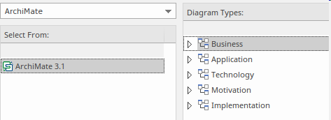 Figure: New Diagram dialog showing the ArchiMate diagram types