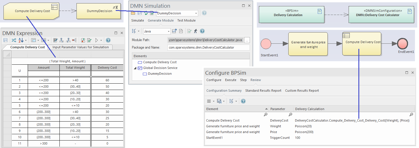 - From the BPSim Case Studies group select BPMN Integrate with DMN - Delivery Cost Calculation