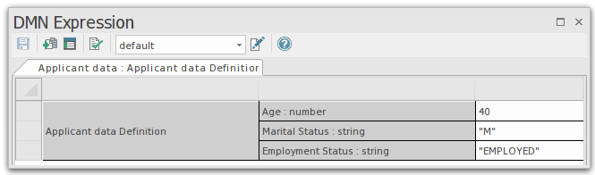 • Clicking on the icon on the DMN Expression window of the InputData element or