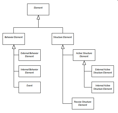 The main hierarchy of behavior and structure elements of the ArchiMate language is shown in this diagram. All the elements in this model have italic names, indicating that they are abstract and do not themselves participate in models. They are represented as independent of the layers of the framework as they can apply across all layers. The most fundamental division of the language elements is into Behavior and Structure elements.