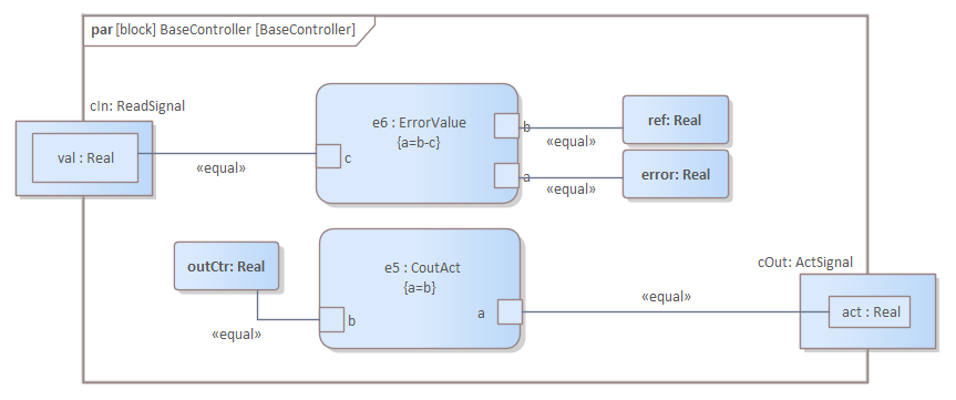 For further information, see the Parametric Diagrams, Parametric Diagram Modeling Assistant and Parametric Simulation Using OpenModelica Help topics. |