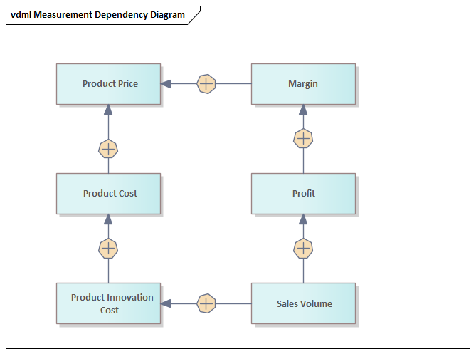 Using the Value Delivery Modeling Language (VDML) facility you can model organizations and the way in which value is exchanged. The models can be used to show the relationship between Capabilities, Activities, Stores, Roles, Value Propositions. In the following diagram you will see the use Measured Characteristics to represent aspects of the cost and profit associated with the development of a new product. The elements are connected by the Measurement relationship indicating the direction of the measurement.
