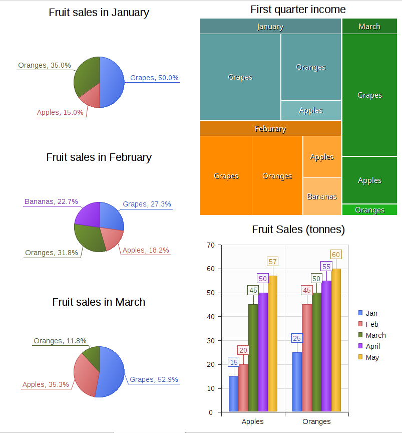 However, if the number of Charts cannot form a uniform grid, there will be one element left; these styles position that remaining element on a specific face of the grid.