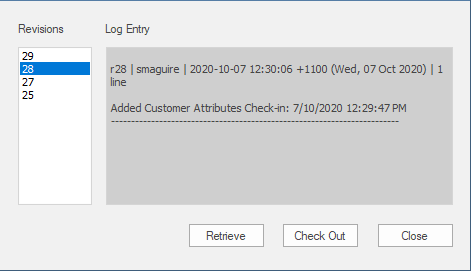 As your model evolves you might want to revert to a previous version of a Package. By using the 'File History' dialog you can select any prior version. By viewing the Check-In comments and the Date and Time of the Check-In the required version can be selected. The Retrieve option will restore the current model to the selected version without the need to check-out the Package.
