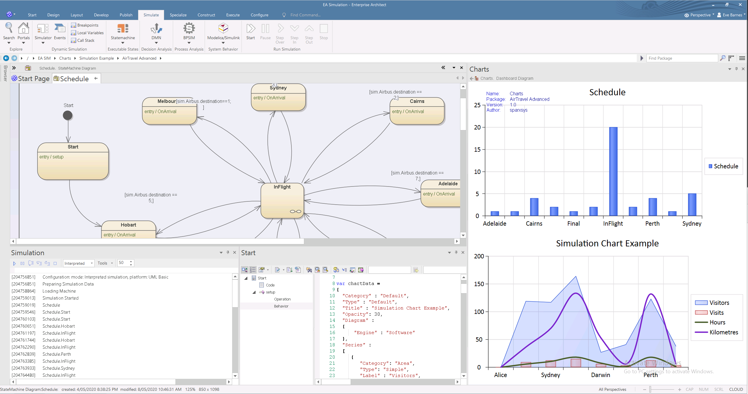 - Presentation of the results of your modeling and simulation in Chart formats, either within a dedicated graphics presentation tool or through the Dynamic Charting facilities of Enterprise Architect
