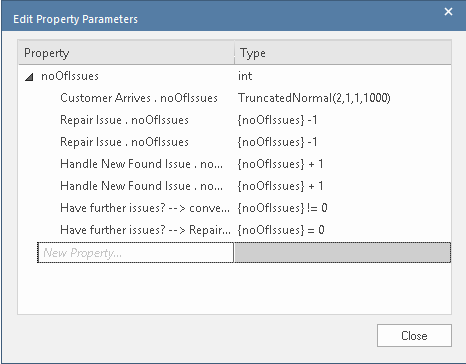 button on the toolbar. The 'Edit Property Parameters' dialog displays.
