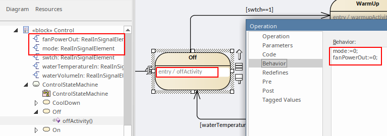 For example, in this case the Block 'Control' has a child StateMachine named 'ControlStateMachine', which has a child StateMachine diagram 'ControlStateMachine':