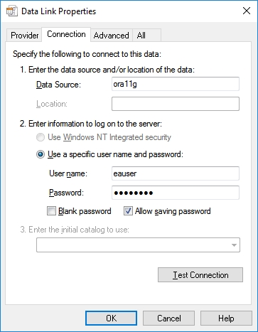 button to open the 'Data Link Properties' dialog to build the connection string. - Select the provider 'Oracle Provider for OLE DB' and click on the Next >> button.