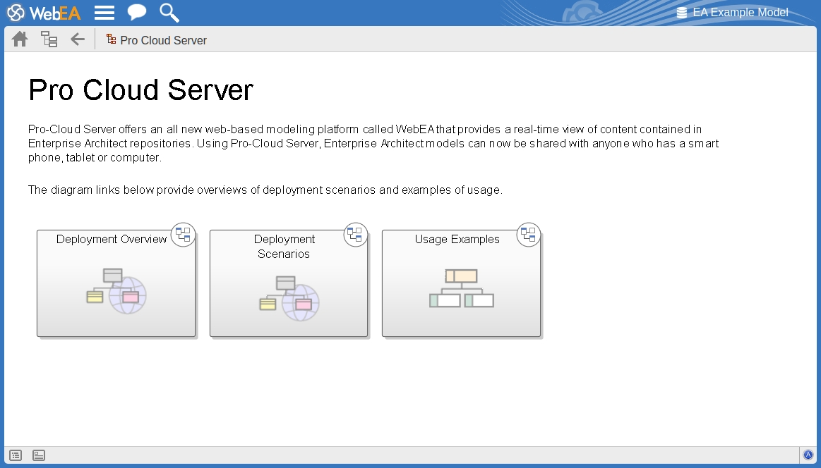 When a diagram is selected, the Main View content area displays the entire diagram as a single image. As an example, this is the Pro Cloud Server diagram in the EAExample model: