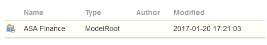In Icon view, each object is represented by an image and an object name. As an example, a root node with the name 'ASA Finance' would be represented by: