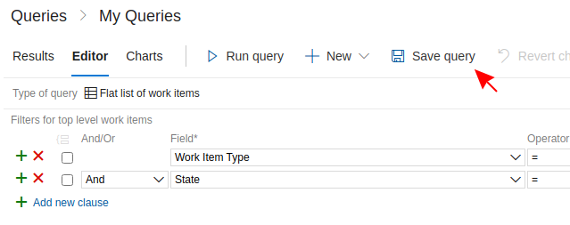 - Select either 'Shared Queries' or 'My queries'
