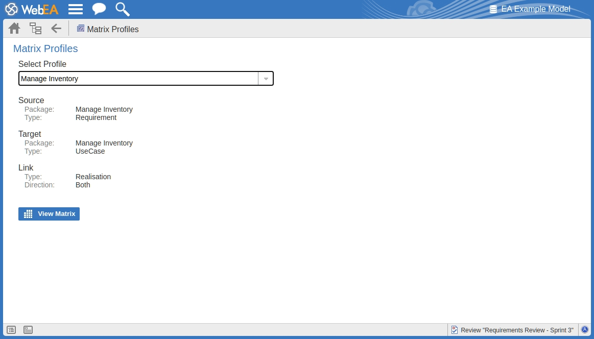 - A Matrix Profile can also be accessed via a Hyperlink or a Matrix Specification Artifact on a diagram