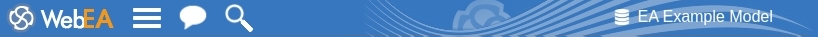 WebEA's heading area displays the application logo in the top left corner, a search icon, a collaboration icon (if any collaboration features are enabled) and 'Hamburger' icon. The right side of the heading area displays the name of the current WebEA model connection.