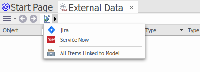 - In the toolbar of the External Data window, click on the drop-down arrow to the right of the 'globe' icon.
