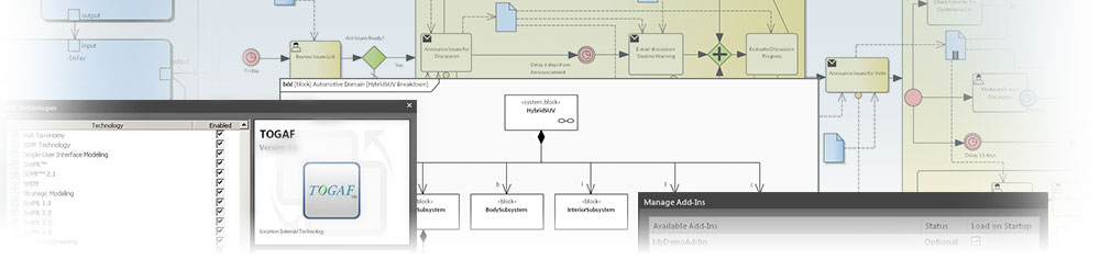 Extend the power of Enterprise Architect to create your own domain specific Add-Ins, scripts and functionality.