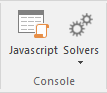 The 'Console' panel provides options for working on JavaScript code for Dynamic Simulation, and specifically on the code for MATLAB and Octave Solvers in Mathematical Simulation.