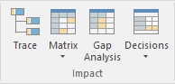 A model is a structure of Packages and elements, most of which have interactions with each other at various levels. The 'Impact' panel provides a set of facilities for establishing how the objects interact and - equally important - where actions and interactions are missing.