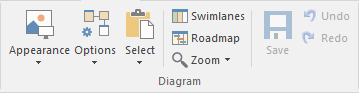 The 'Diagram' panel provides a collection of tools for managing the use of diagrams and for manipulating the appearance and presentation of elements in a diagram.
