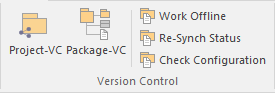 The 'Version Control' panel provides facilities for configuring and managing the powerful Version Control facility in the tool. Version Control Configurations can be defined using the 'Project-VC' option and validated for all versioned Packages using the 'Check Configuration' option. There are options to work offline and also to compare the status recorded in the model against that reported by the Version Control provider.