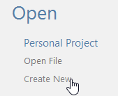 Create New option available on the Start page