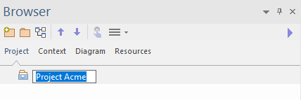 In the Browser window (pressing ) rename the 'Model' node using a suitable name e.g. 'Your Organization Name' or 'Your Project Name'