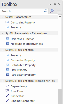 The most important elements and connectors used with the Parametric diagram are:
