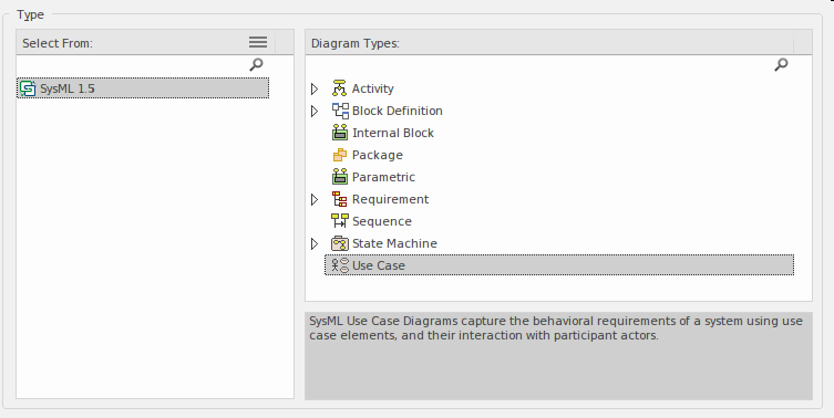 A Requirement diagram can be created from a number of places in the User Interface, such as: