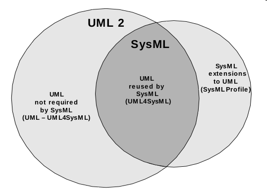 The SysML is based on another standard, the Unified Modeling Language (UML), that has been adopted and used by Software Engineers since the late nineties. This is important, as many Systems Engineering projects involve both system and software aspects and so both system and software engineers are able to understand each others models, leading to greater transparency, less chance of errors and mutually intelligible language constructs, resulting in a system that is less likely to fail or exhibit faults. This Venn diagram shows the relationship between the two standards. SysML reuses the Use Case, Activity and Sequence Diagrams.