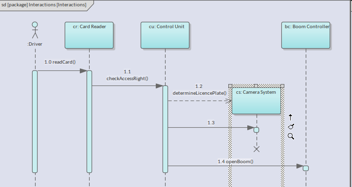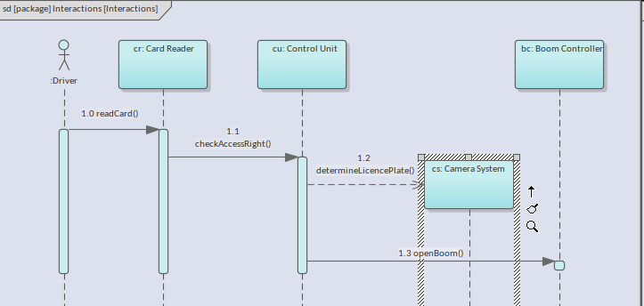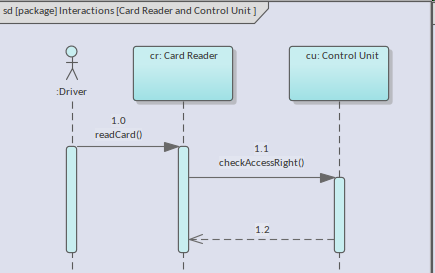 There is a third type of message that can optionally be used with a Synchronous message, this being the Reply Message. This message signifies an operation that has been invoked on the recipient returning a receipt that the behavior has been executed and is complete. The inclusion of Reply messages in a diagram is a stylistic decision. Some engineers and modelers prefer to leave them off diagrams to reduce the visual clutter. If a return type and value have been set, this will be returned as part of the Reply message.