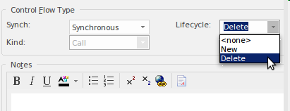 Setting this property has the effect of moving the targeted Block to a position lower in the diagram, signifying that the Block Instance would not be created until this point in the overall time sequence of the diagram. The message line style is also altered to a dashed line with an open arrow-head to reflect that it is a Create message. Other aspects of the semantics and effect of this message are unchanged.