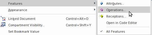 An Interface can be created by simply dragging the 'Interface' icon from the Toolbox page. Behavioral features can be added by selecting the appropriate Feature from the Interface's context menu.