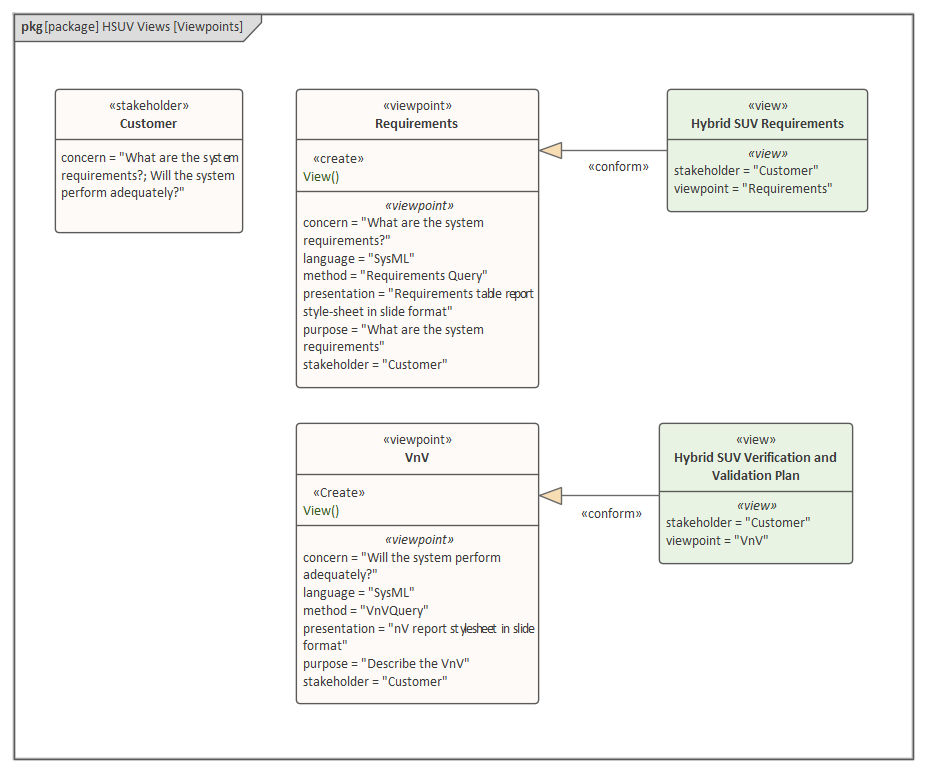 Fundamentally a system is conceived of, analyzed, designed and built for its stakeholders. Systems Engineers gather concerns and interests from stakeholders and apply analysis to create requirements and constraints. These are used as input for analysis and design and before the system is delivered for validation and verification. Stakeholders need to be able to visualize how their interests are being addressed at various stages in the engineering process and this visualization can be provided by views and viewpoints. The concepts of viewpoint and view are articulated in ISO-42010 (formerly IEEE-1471) and the SysML specification was written to be consistent with the ISO-42010 standard. There are a number of commonly used viewpoints including: