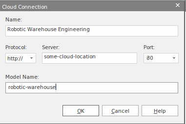 The assets are stored in the Cloud and require a connection to be specified to a Pro Cloud Service model that has been set up for this purpose. Typically, this task is performed by the infrastructure section of an IT department, and the details of how to connect would be simply provided to the engineering team. This screen capture shows the details that are required to make the Cloud-based connection.