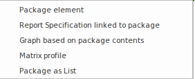 A Package diagram can be created from a number of places in the User Interface, by selecting:
