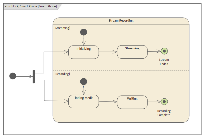 Enterprise Architect will also rely on the StateMachines being well formed, and that each region has an initial pseudostate defined, when a modeler is working with Executable StateMachines or running simulations to visualize the States a Block instance will transition through in its lifetime.