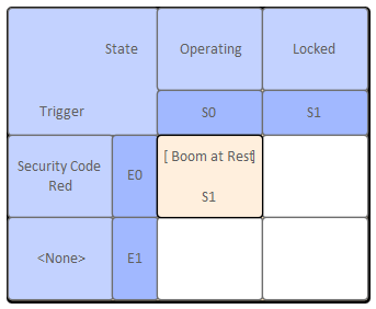A guard's expression can be defined in plain English, but typically it is written in the form of a constraint using a formal constraint language such as the Object Constraint Language. When working with simulations or Executable StateMachines the condition is expressed in the syntax of the code language that it is to be generated in, for example JavaScript or C++. This also applies to Effects. In this diagram we can see a mathematical expression that can be evaluated by a human or a machine.