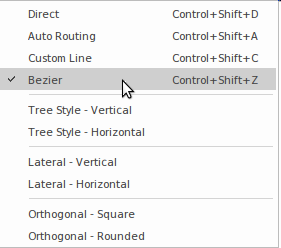 The shape of the curve can be altered by dragging the construction point to a new location. Any one of a number of line styles can be used, providing the modeler with a toolkit of options for diagram presentation. This context menu can be selected and the line style set for each connector individually. The color and thickness of the line can also be set from the Layout ribbon.