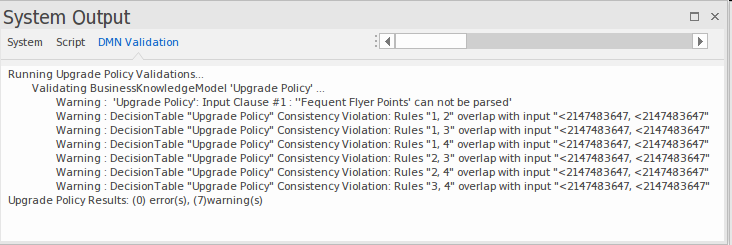 The DMN standard specifies a number of aspects of the grammar of DMN expressions. including Decision Tables, and it is important that these are complied with; it is equally import that a number of other aspects of the rules are also well formed. The validation of the Decision Tables in Enterprise Architect checks: