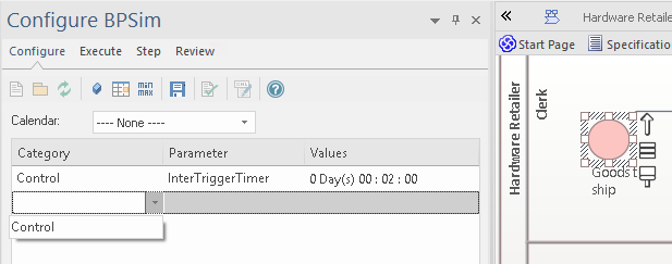 To begin defining Control parameters for the appropriate element (such as an Event or Gateway):