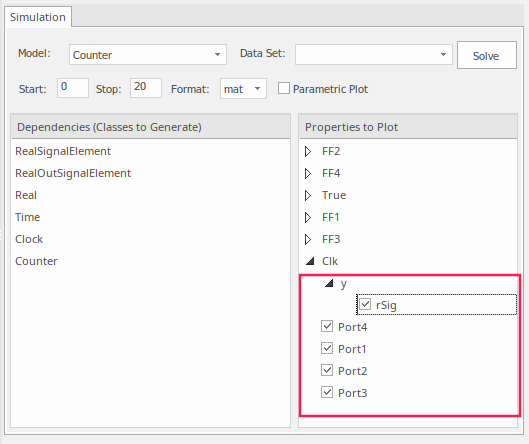 For more details on these settings, see the Configure SysML Simulation Help topic. |